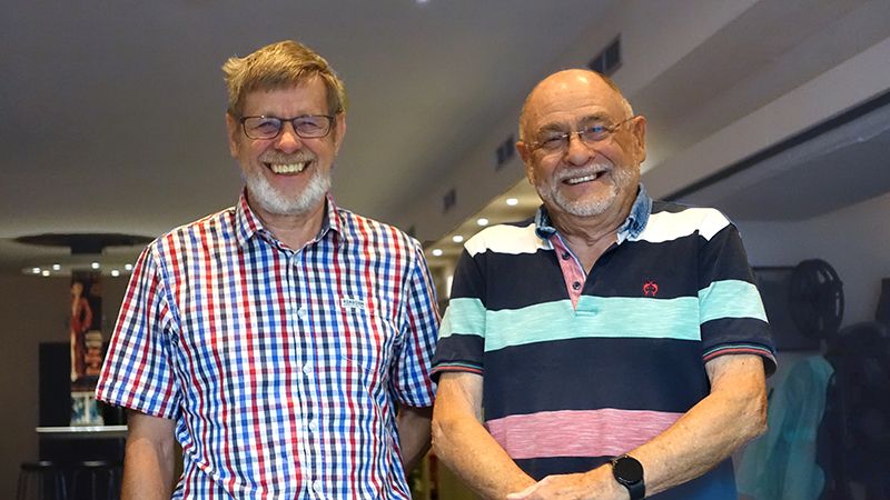 Zwei Männer, ein Thema: die Husumer Filmtage. Es sind Hans-Lorenz Hartung, langjähriger Betreiber des Kino Centers Husum und einer der Gründerväter der Filmtage, und Hans-Peter Schweger. bis Ende 2020 Leiter der Volkshochschule (VHS) Husum, als solcher viele Jahre – und nach wie vor im Kuratorium – in Planung und Organisation des Programms eingebunden. Bis heute nämlich ist die VHS offizieller Veranstalter der Filmtage, in enger Kooperation mit dem Kino Center als Veranstaltungsort.