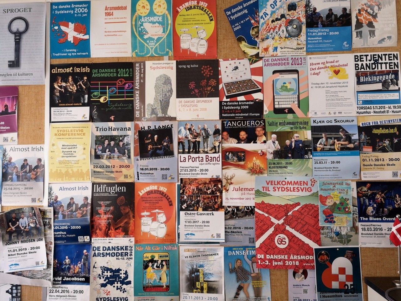 Peter – man ist, wie in Dänemark üblich, per du – ist „Amtskonsulent“ (im Deutschen würde man wohl sagen Kreissekretär) des Sydslesvigsk Forening (SSF) für die Region Sydvest. Von seinem Büro mit Blick auf ein ausladendes Wandgemälde aus steuert er, gemeinsam mit einer Kollegin, das soziale und kulturelle Leben der dänischen Minderheit im Raum Husum und Umland sowie Eiderstedt (siehe Infokasten unten). In Zusammenarbeit mit dem SSF-Kreisverband und den Ortsverbänden plant und organisiert er Veranstaltungen an verschiedenen Orten in der Region sowie im Husumhus. Eine ganze Plakatwand zeigt die Bandbreite der kulturellen Events, vom alljährlichen Jahrestreffen (Årsmøde) bis zu Konzerten.